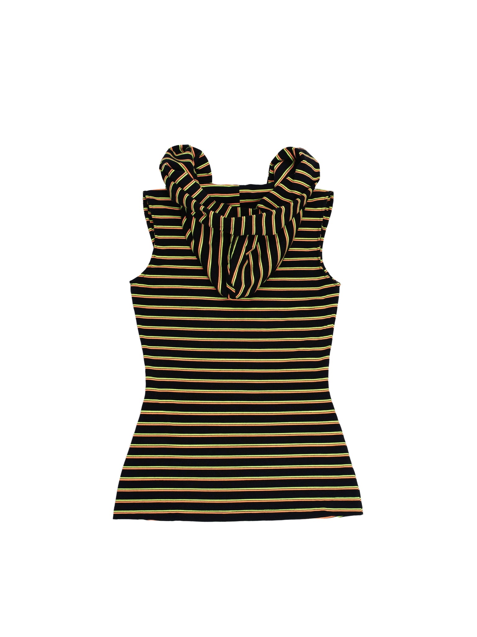 · Sleeveless ribbed-knit in black and yellow horizontal stripes