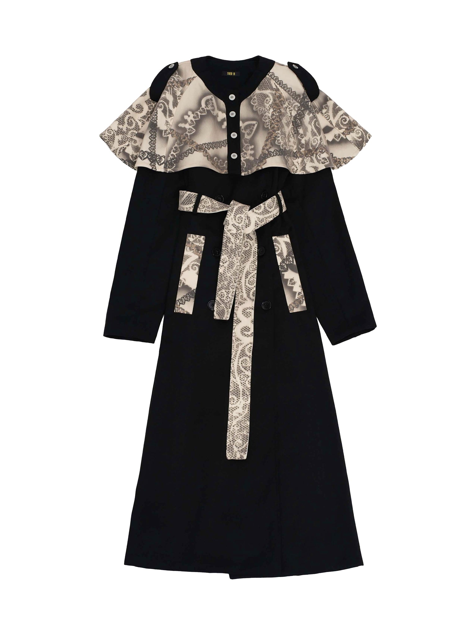 · Lace love motifs cape overlay with button closure