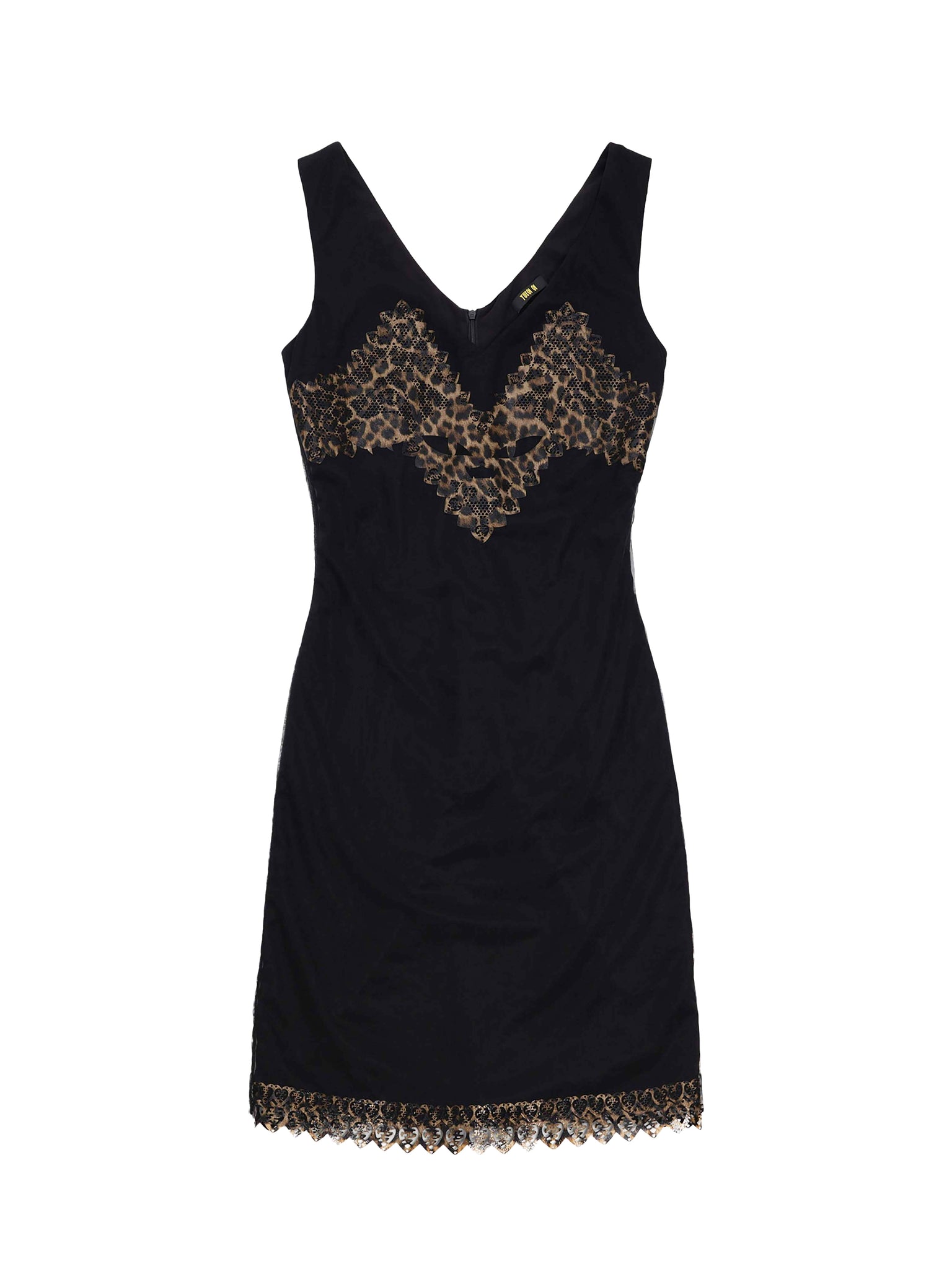 · Leopard feline motif lace pattern at bust and heart motifs at hem