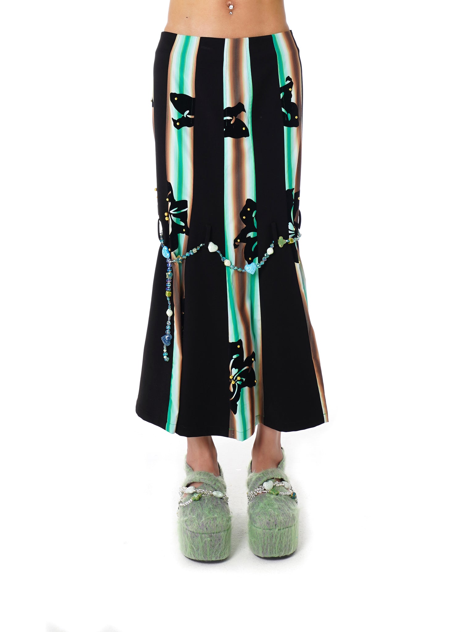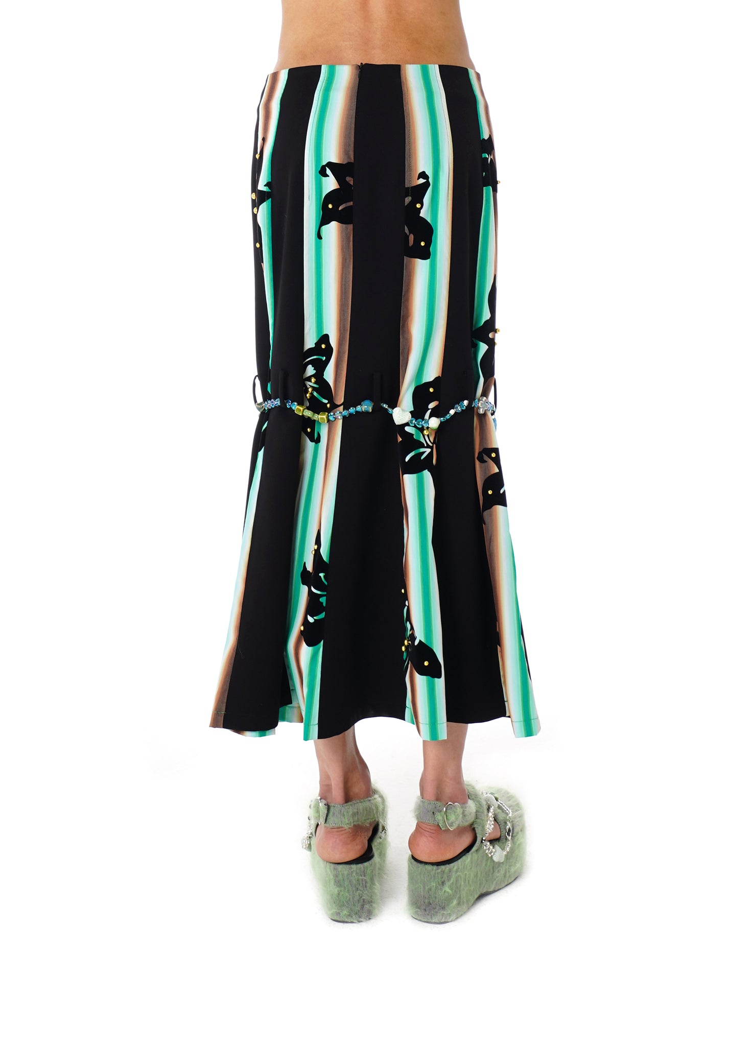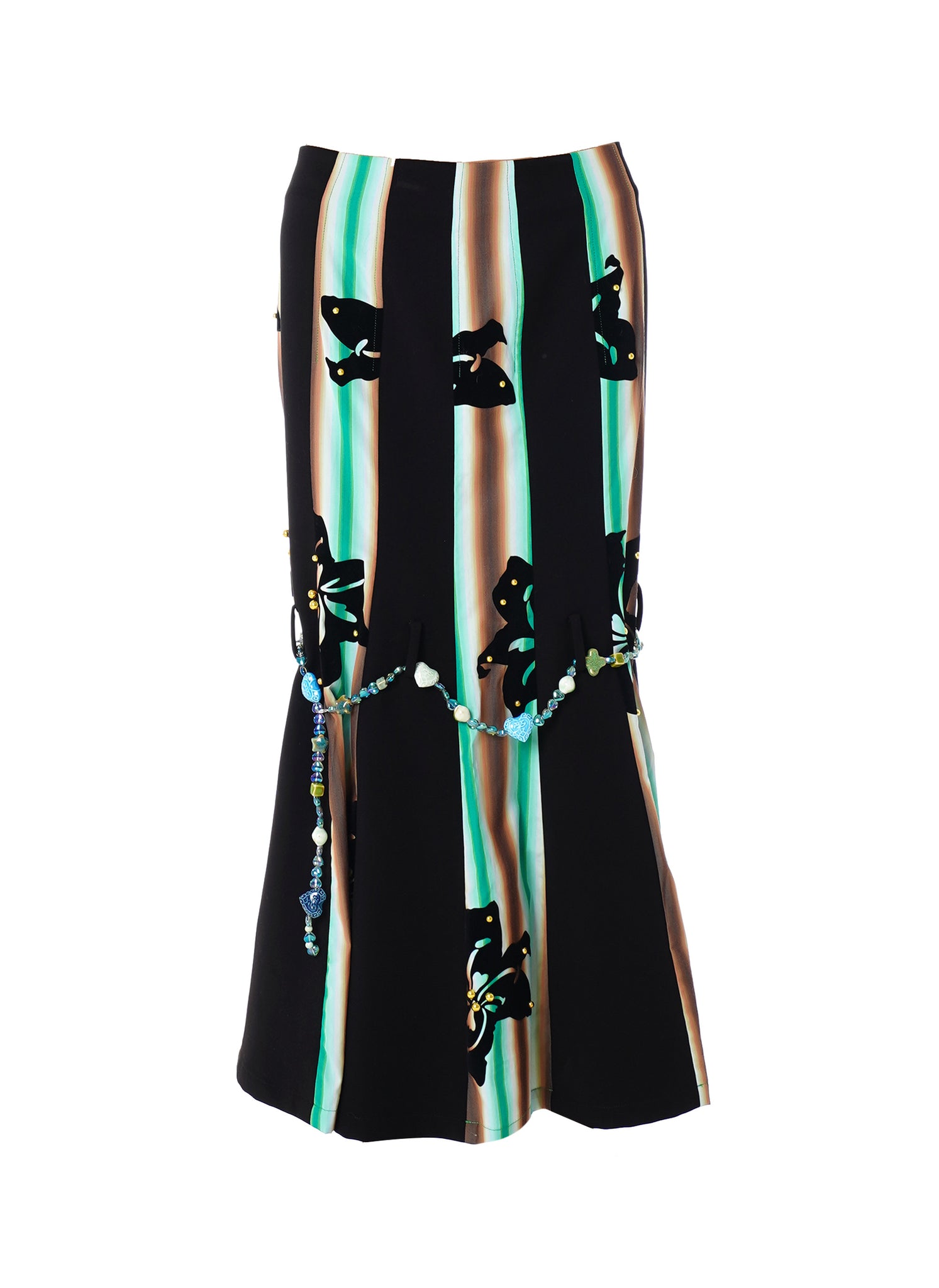 Adding hemline to the classic straight skirt silhouette to create a sense of elegance and dynamism.The lacing design uses the brand's classic heart elements,just like YUEQI QI's vintage romantic style.